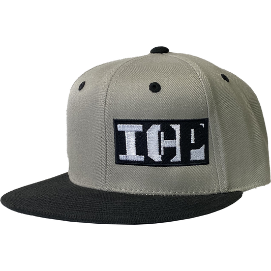 "Block Logo" Fitted Flat Bill Hat In Grey